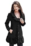 A plus size jacket for the ultimate ruffle lover. We've brought one of the most feminine embellishments to a cold weather piece. Ruffles adorn the flattering V-neck collar, cuffs and bottom hem for an elegant look. The deep neckline creates an elonga