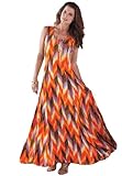 Roamans Women's Plus Size A Line Crinkle Maxi Dress (Multi Print,L)