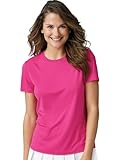 100% polyester. wicks moisture away from the body. rapid dry interlock fabric. suitable for screenprinting and sublimation. tag-free neck label. contemporary fit. contoured and sideseamed for a classic feminine fit.